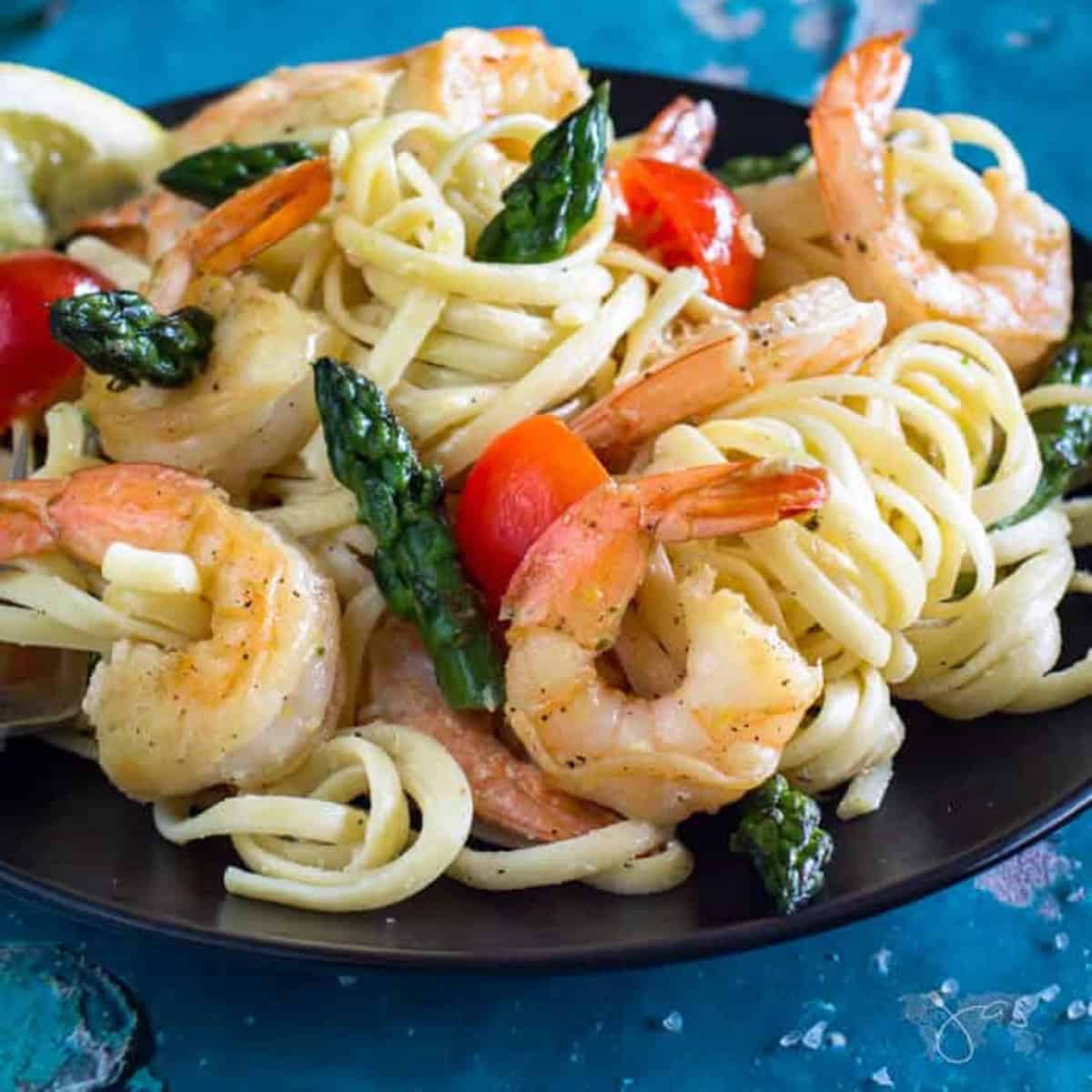 Lemon Garlic Shrimp Linguine with asparagus is a quick and easy, but delicious and elegant pasta dish. With this recipe, you'll have dinner on the table in 20 minutes. Get the recipe: Lemon Garlic Shrimp Linguine