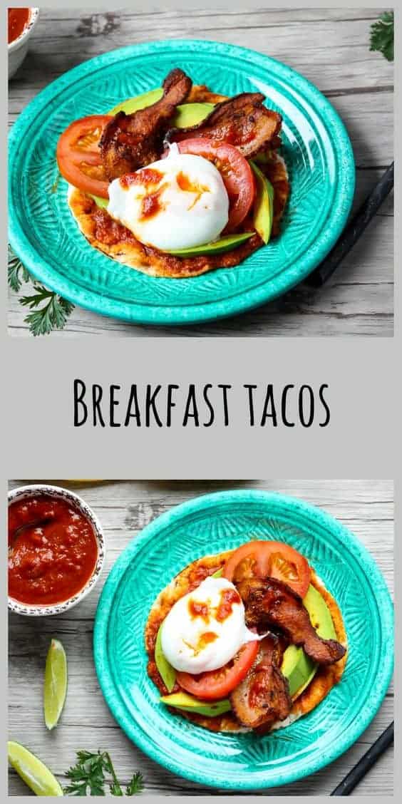 Bacon & Egg Breakfast Tacos are a delicious way to spice up those weekend mornings, and also work as breakfast for dinner night. I love a perfectly poached egg. For me, the whites should be completely cooked, while the yolk should be just thickened but still a little drippy.