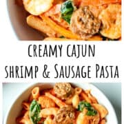 Try this Cajun shrimp and sausage pasta for a hearty and healthy meal that's ready in less than 30 minutes! Bold Cajun flavors are paired with juicy shrimp, smoky Andouille sausage, and al dente penne, creating a rich, spicy, and creamy tomato sauce. Serve it with a side of crusty bread or a salad for the ultimate weeknight meal!