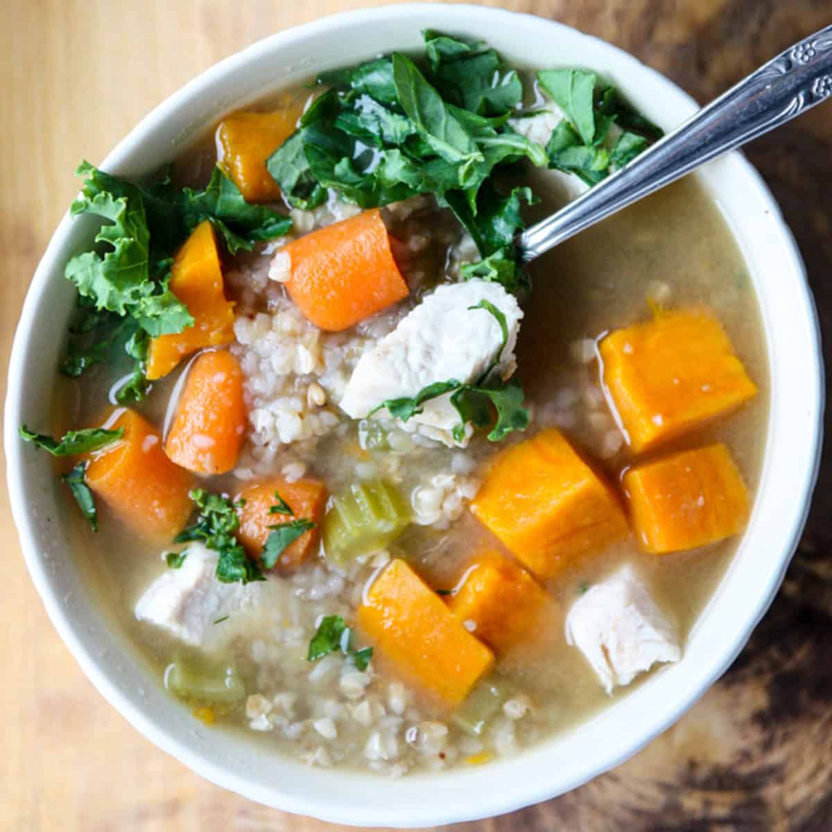 Buckwheat Soup with Turkey, Sweet Potato & Kale