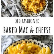 You can make homemade stovetop macaroni and cheese almost as easily, and I often do. But this old fashioned baked macaroni takes it up one more step. In the oven, it gets even creamier and the crunchy topping is a delicious contrast to all that creamy, cheesy, goodness.