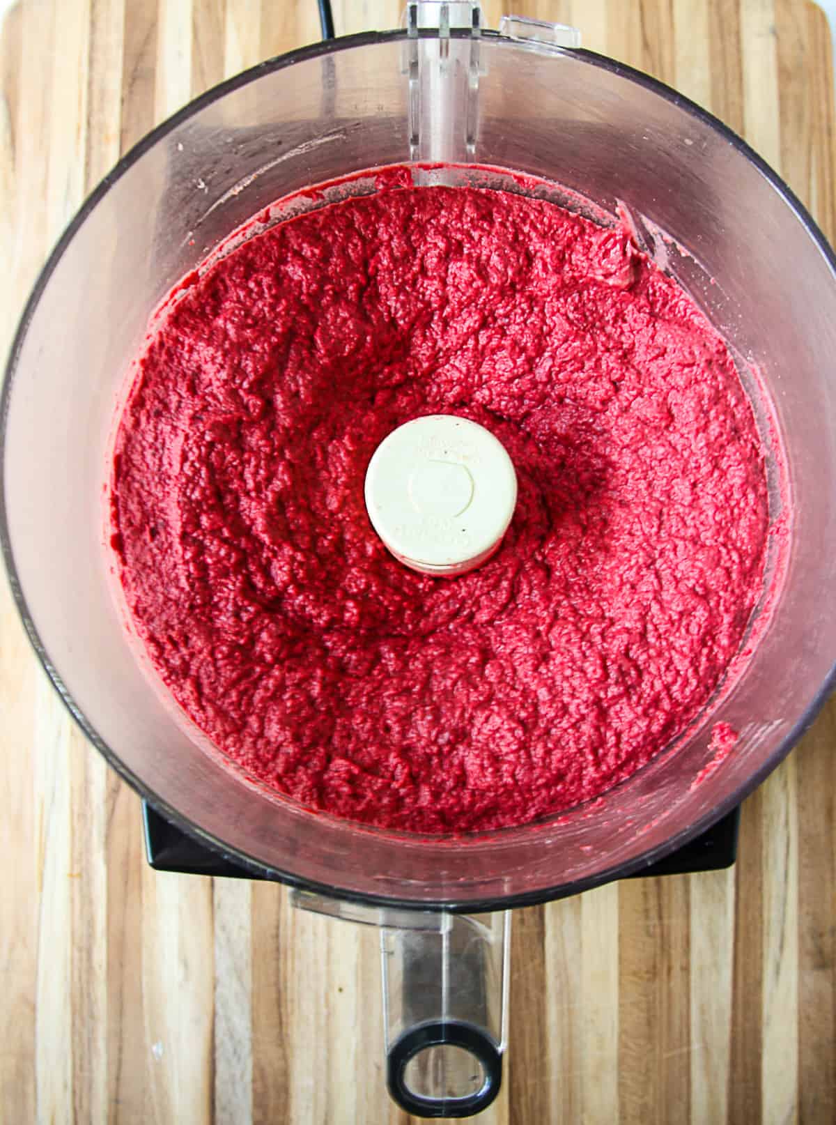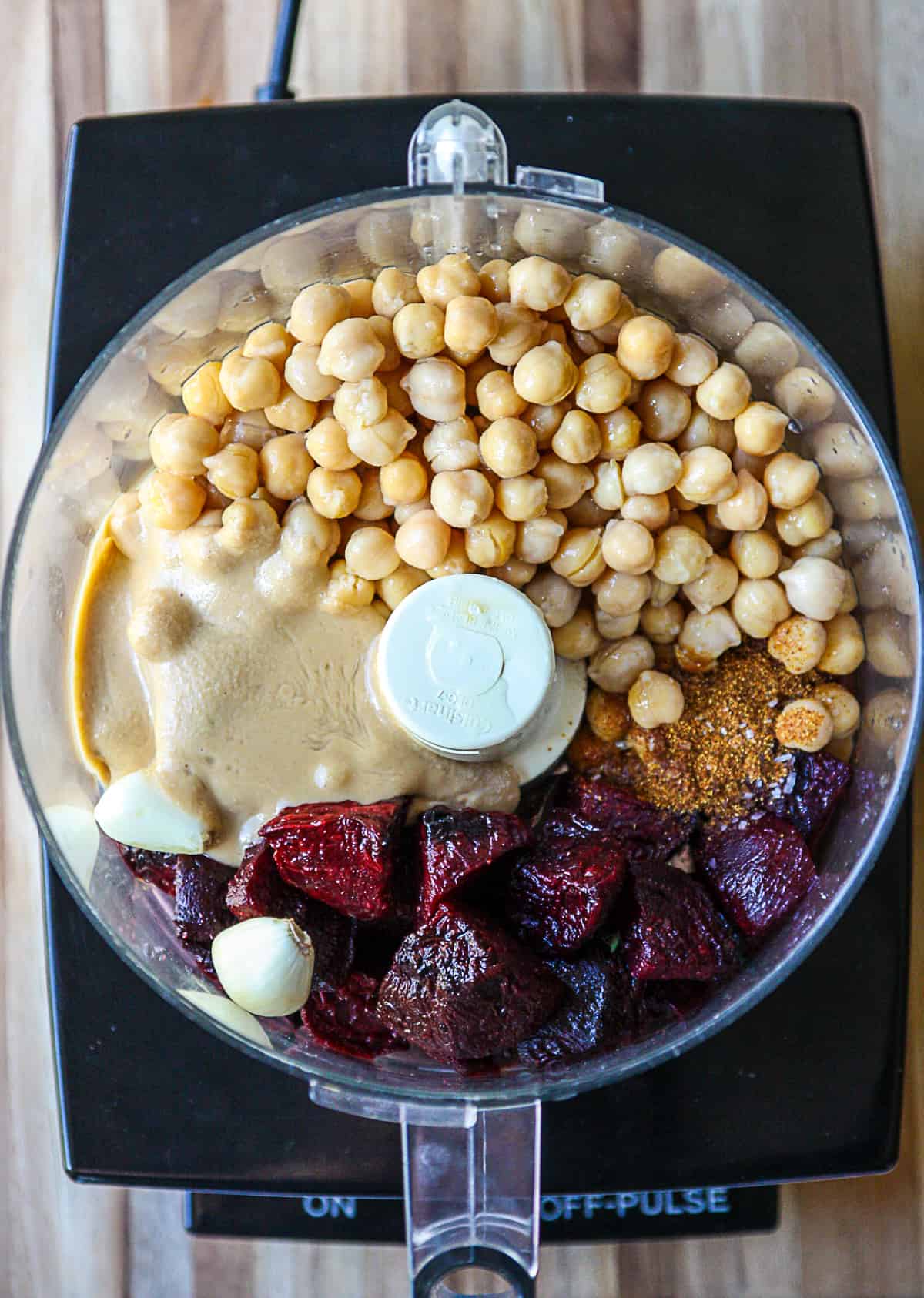 - Roasted Beet Hummus is so easy to make. Just put everything in a food processor and whirl away!