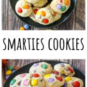 Smarties cookies are delicious soft and chewy chocolate chip cookies with candy-coated milk chocolate Smarties candies. These cheerful cookies are super easy and have sweet, colorful Smarties nestled in every delicious bite. Kids and adults alike love them!