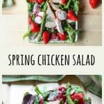 Spring Chicken Salad is a plate full of spring. All kinds of spring veggies, strawberries, and lean roast chicken breast slices make this salad a meal. This post is sponsored by Lilydale. As always, all opinions are my own.