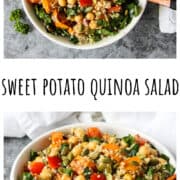 Roasted sweet potato quinoa salad is a nutritious and flavorful dish the whole family will love. This delicious salad has it all; protein-rich quinoa and chickpeas, nutritious veggies and greens, plus sunflower seeds for healthy fats and even more protein.